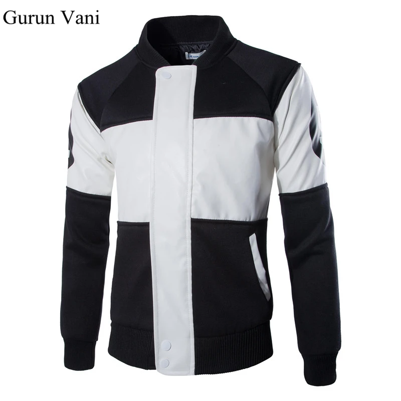 New Fashion Autumn Winter Mens Leather Jacket Patchwork Motorcycle Jacket Men Digital Pattern